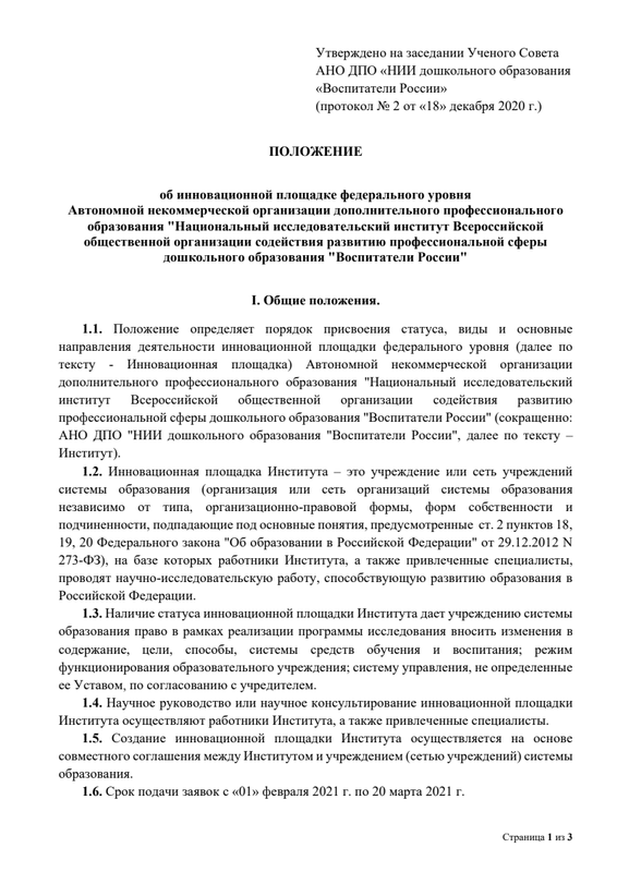 инновационная площадка федерального уровня