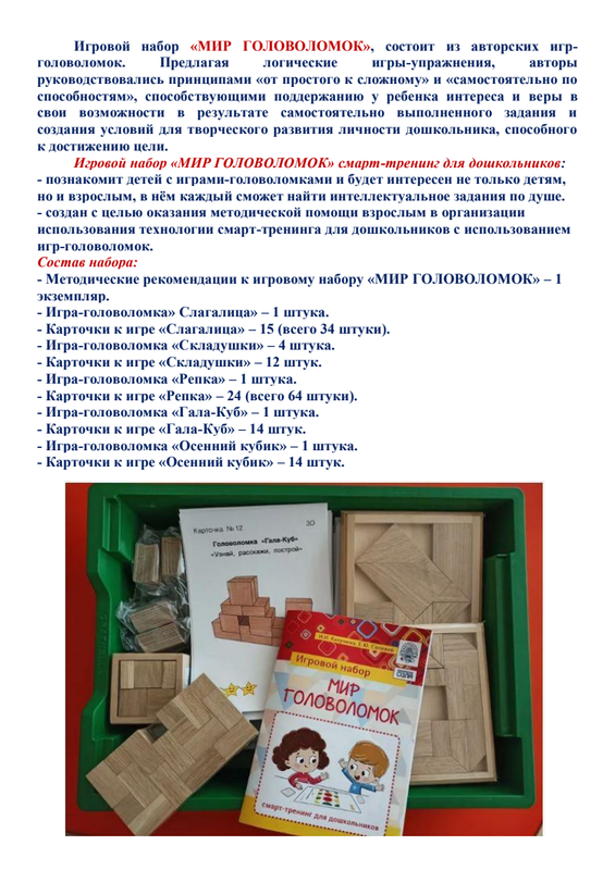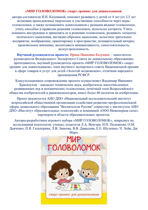 «Образовательный модуль «МИР ГОЛОВОЛОМОК» смарт-тренинг для дошкольников»