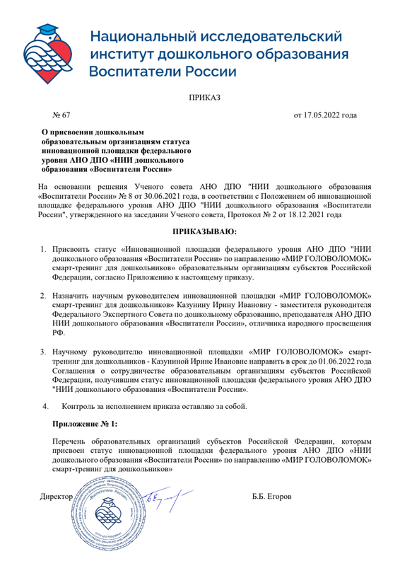 АНОДПО НИИ дошкольного образования «Воспитатели России"